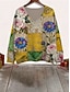 Mulheres Suéter Pulôver Vintage Moda Roupa de rua Floral Estriado Decote V Superdimensionado Tricotado Imprimir Manga Longa Tops regulares Tricotar Ao ar livre Diário Amarelo Primavera Outono