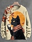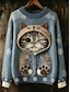 Mulheres Suéter Pulôver Vintage Moda Roupa de rua Gráfico Gola Redonda Tricotado Imprimir Manga Longa Tops regulares Tricotar Diário Feriado Para Noite Preto Branco Outono Inverno