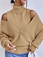 Mulheres Suéter Pulôver Roupa de rua Casual Cor imaculada Gola Alta Tricotado Ombro frio Manga Longa Tops regulares Tricotar Diário Feriado Para Noite Rosa Camelo Outono Inverno