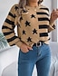 Mulheres Suéter Pulôver Roupa de rua Casual Gráfico Geométrica Estrela Gola Redonda Tricotado Imprimir Manga Longa Tops regulares Tricotar Diário Feriado Para Noite Laranja Cáqui Outono Inverno