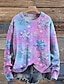 Suéter feminino casual macio tie-dye estiloso moderno manga comprida gola redonda tops regulares estampa de feriado diário amarelo rosa azul primavera outono inverno