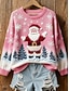 Suéter feminino de natal, pulôver casual diário, gráfico, gola redonda, malha estampada, manga comprida, tops regulares, tricô, natal, fim de semana ao ar livre, rosa, outono inverno