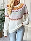 Mulheres Suéter Fair Isle Pulôver Elegante Vintage Roupa de rua Geométrica Estriado Gola Redonda Floral Manga Longa Tops regulares Tricotar Escola Ao ar livre Casa Preto Vermelho Primavera Outono