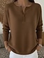 Mulheres Suéter Pulôver Moda Casual Cor imaculada Estriado Gola Redonda Botões Tricotado Manga Longa Tops regulares Tricotar Ao ar livre Diário Final de semana Cáqui Café Outono Inverno