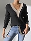 Mulheres Suéter Pulôver Roupa de rua Casual Bloco de cor Decote V Patchwork Tricotado Manga Longa Tops regulares Tricotar Diário Feriado Para Noite Preto Azul Escuro Outono Inverno