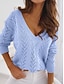 Mulheres Suéter Elegante Casual Macia Cor imaculada Crochê Decote V Tricotado Buraco Manga Longa Tops regulares Tricotar Ao ar livre Diário Final de semana Azul Marron Primavera Outono