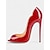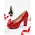 Sapatos de salto alto femininos com laço de couro envernizado vermelho, sapatos de salto bloco para festa de Natal para roupas de feriado &celebrações festivas