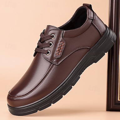 Sapatos derby casuais masculinos marrons, com cadarço, leves e confortáveis, ideais para o escritório, uso diário, viagens, deslocamentos, reuniões, looks de fim de semana e para um estilo elegante e sofisticado.