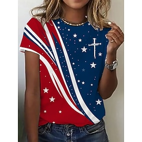 Camiseta patriótica feminina do Dia da Independência gráfica bandeira vintage estilosa clássica manga curta gola redonda tops regulares impressão diária fim de semana azul verão primavera