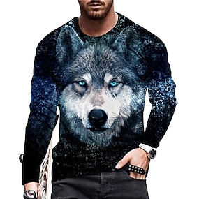 Homens Gráfico Animal Lobo Camiseta Manga Longa Camiseta Impressão 3D Gola Redonda Camisa Moda Designer Casual Esportes Feriado Para Noite Preto Primavera & Outono Roupa S M L XL 2XL 3XL 4XL