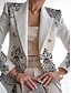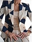 Mulheres Blazer Manter Quente Confortável Botões Vintage Moda Clássico Moderno Geométrica Formal Férias Casual Diário Trespassado Padrão Lapela Chanfrada Normal Manga Longa agasalhos Preto Branco Azul