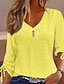 Mulheres Blusa Tecido Moderno Casual Manga Longa Decote V Tops regulares Diário Feriado Botões Preto Branco Amarelo Rosa Azul Primavera Outono
