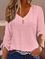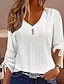 Mulheres Camisa de renda Blusa Tops elegantes Tops de chiffon Côr Sólida Flor Elegante à moda Básico Manga 3/4 Sino Decote Canoa Tops regulares Convidado do casamento Trabalho Diário Com Corte Barra
