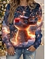 Mulheres Moletom Gráfico Animal Rena Casual Manga Longa Gola Redonda Tops regulares Rua Casual Feriado Imprimir Azul Verde Escuro Azul Escuro Primavera Outono Inverno