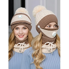 Conjunto feminino de inverno de 3 peças – gorro de pele sintética macia, máscara respirável e cachecol de tricô com forro de lã, disponível em várias cores, perfeito para o clima frio e atividades ao ar livre.