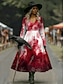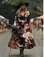 Vestido Midi Feminino Estampa Gráfica Bruxa Vestido A Linha Férias Casual Diário Ajuste Regular Floral Gráfica Hocus Pocus Manga Longa Decote V Preto Vermelho Marrom Primavera Outono