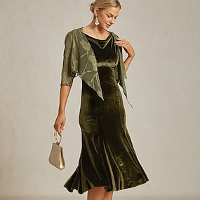 Mulheres Vestido midi Vestidos De Sereia Trompete Elegante Festa Convidado do casamento Coquetel Normal Côr Sólida Sem Manga Gola Boba Oliva