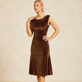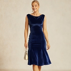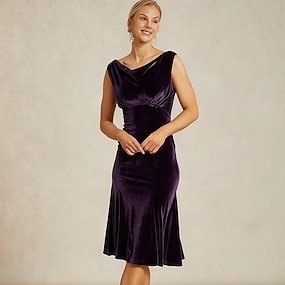 Mulheres Vestido midi Vestidos De Sereia Trompete Elegante Festa Convidado do casamento Coquetel Normal Côr Sólida Sem Manga Gola Boba Vinho
