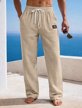 Homens Calças de linho Calças Calça verão Calças largas Calças de praia Com Cordão Cintura elástica Perna reta Tecido Conforto Respirável Comprimento total Diário Ao ar livre Feriado Férias Moda