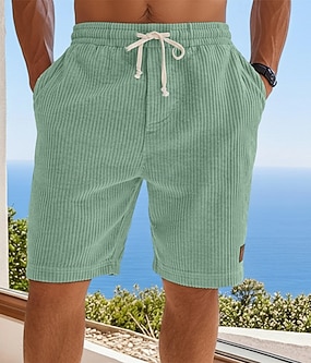 Homens Shorts de verão Shorts casuais Shorts de veludo cotelê Com Cordão Bolsos Cintura elástica Tecido Conforto Respirável Comprimento do joelho Ao ar livre Férias Desporto Casual Preto Branco