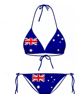 Moda de Dia da Independência Traje de Banho para Mulheres de 2 Peças Biquíni Cheeky Slim Sem Costas para Férias de Praia com Bandeira Halter Neck Sem Mangas Trajes de Banho