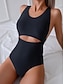 Mulheres Roupa de Banho Shorts boxer elásticos Cavado roupa de banho Férias Roupa de Praia Côr Sólida Sem Manga Fatos de banho