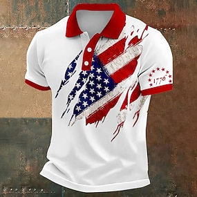 4 de julho de 2026 250º Homens American US Flag Pólo Manga Curta Camisas polo Lapela Casual Roupa Esportiva Roupa Diária Traje de festival Impressão 3D Botões Primavera Azul Branco Vermelho