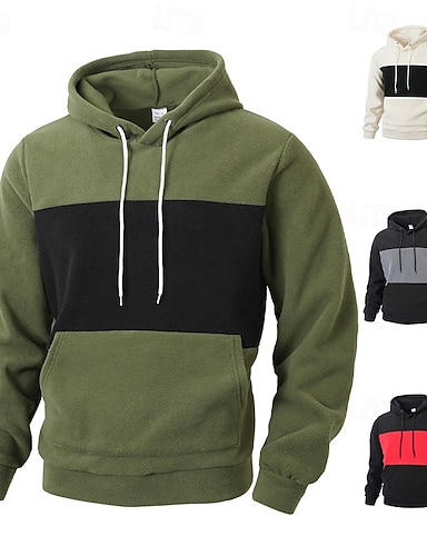Homens Moletom Moletom de lã Preto Verde Tropa Vermelho Bege Com Capuz Tecido Patchwork Bloco de cor Desportos e Ar livre Casual Diário Roupa de rua Legal Roupa de Esporte Outono Inverno Roupa