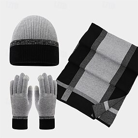 Homens Gorro Chapéus de inverno Gorros Conjunto de chapéu e luvas Gorro de inverno Caqui Cinzento Claro Fibras Acrilicas 3 Peças Tricotado Aconchegante Roupa Diária Para Noite Bloco de cor Quente