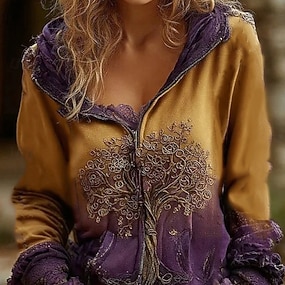 Moletom Hoodie Vintage Boho Estampado em 3D Feminino Moletom Patchwork Floral Pulôver Moletom Viking Casual Manga Longa Com Capuz Rua Vestuário Diário Patchwork Estampado Bolso Frontal Roxo Primavera