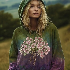 Hoodie Vintage Boho Feminino com Impressão 3D Sweatshirt de Patchwork Floral Viking Pulôver Floral Gráfico Vintage Casual de Manga Longa com Capuz Impressão de Rua com Bolso Frontal Verde Primavera