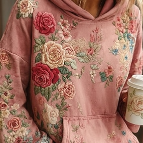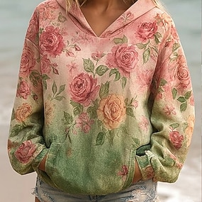 Moletom Feminino Hoodie Pullover Oversized de Manga Longa Casual Gráfico Floral Quente Ativo Com Capuz Tops Regulares Street Dailywear Estampa Branca Rosa Roxa Verde Caqui Primavera Outono Inverno