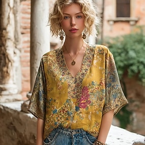 Moletom Capuz Vintage Boho 3D Impressão Mulheres Moletom Patchwork Floral Pullover Moletom Ativo Vintage Quente Manga Longa Tops Roupas Diárias Street Patchwork Amarelo Vermelho Azul Laranja