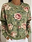 Mulheres Moletom Floral Casual Manga Longa Gola Redonda Tops regulares Casual Rua Dia a Dia Rosa Verde Primavera Outono Inverno