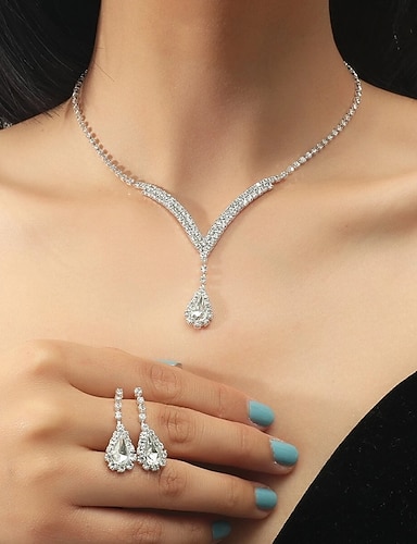 Conjunto de Jóias 3pçs Strass Liga Brincos Colares Mulheres Elegante Vintage Moda Geométrico Forma Geométrica Conjunto de jóias Para Casamento Festa Aniversário