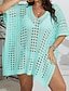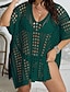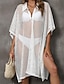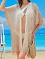 Mulheres Roupa de Banho Cobertura roupa de banho Bainha com franja Com Corte Férias Roupa de Praia Âmbar Decote V Manga Curta Fatos de banho