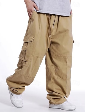 Homens Calças Cargo Calças Táticas Calças Botões Cintura elástica Bolso multi Tecido Vestível Ao ar livre Diário Acampar e Caminhar Casual Grande e Alto Preto Amarelo