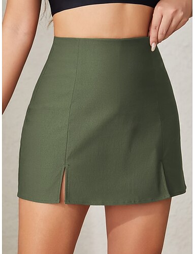 Mulheres Saia de férias Moda Casual Mini Cintura Alta Saias Tecido Pontas duplas Micro-Elástica Diário Rua Vinho Preto Verde Tropa Marron Verão Poliéster
