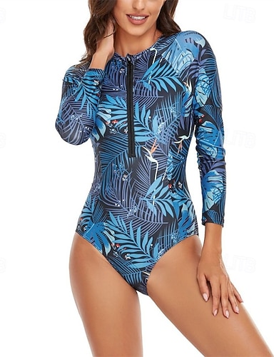 Mulheres Roupa de banho Maiôs de uma peça Gráfico Zip Up Proteção UV Manga Longa Roupa de Banho Surfe Praia Férias Primavera