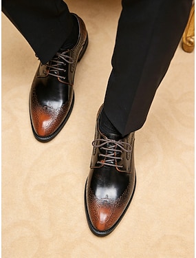 Sapatos Oxford brogue masculinos em tom castanho – calçado elegante para casamentos, eventos formais e reuniões de negócios.