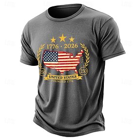 4 de julho de 2026 Dia da Memória 250º Camiseta Masculina Estampa 3D Bandeira dos EUA Gola Redonda Manga Curta Rua Diária