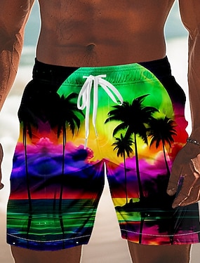 Homens Coqueiro Paisagem Plantas Tropicais Shorts de Natação Bermuda de Surf Calção de Banho Cintura Média Havaiana Férias Com Cordão Forro de malha Cintura elástica Designer Roupa