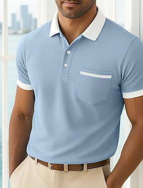 Homens Camisa de golfe Polos Piquê Trabalho Casual Lapela gola pólo com nervuras Manga Curta Básico Moderno Bloco de cor Patchwork Bolsos Primavera Verão Normal Preto Vinho Azul Marinha Azul Claro
