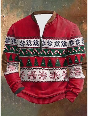 Natal Homens Árvore de Natal Floco de Neve Natal feio Moletom Moletons Manga Longa Moletom Quarter Zip Vintage retrô Estampado Feriado Para Noite Imprimir Outono Inverno
