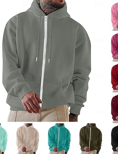 Homens Moletom Full Zip Hoodie Moletom com capuz Moletom de lã Vermelho Vinho Preto Verde Claro Rosa Verde Tropa Com Capuz Tecido Zíper Desportos e Ar livre Casual Diário Roupa de rua Legal Roupa de