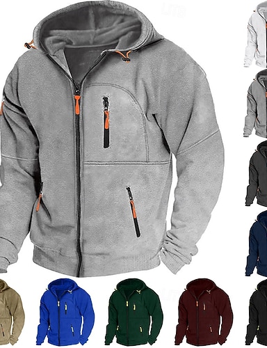 Homens Casaco com capuz Moletom zip Up com capuz Jaqueta de suor Sherpa Preto Branco Vinho Verde Tropa Azul Marinha Com Capuz Côr Sólida Zíper Legal Casual Indispensável para coordenação motora e