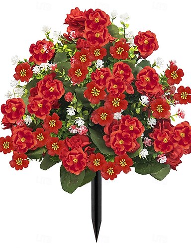 Planta artificial de begônia, topiaria de begônia vermelha artificial de 56 cm com haste de sustentação, eucalipto realista. &Arranjo de flores de chá para decoração de interiores e exteriores, como