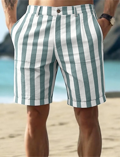 Homens Calção Shorts de linho Shorts de verão Shorts de praia Bolsos Cintura elástica Listrado Conforto Respirável Comprimento do joelho Ao ar livre Praia Feriado Férias Azul Rosa Sem Elasticidade
