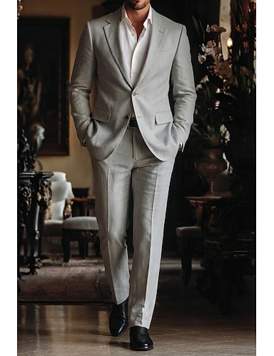 Masculino Smoking ternos de linho Casamento na primavera O negócio Azul Marinha Cinzento Claro Primavera Verão Terno Lapela Chanfrada Moda Leve Cor Sólida Moderno Conjunto de 2 peças Comum 2 Botões