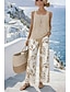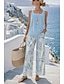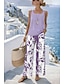Mulheres Conjuntos de calças Sem Manga Decote Quadrado Floral Gráfico Moda Roupa de rua Casual Diário Ao ar livre Azul Roxo Cáqui Primavera Verão Ajuste Largo